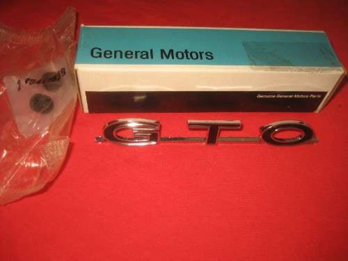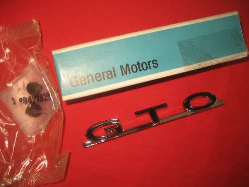NOS (New Old Stock) GTO trunk lid emblem for 1964 - 1969 Pontiac GTO. -- $80.00 -- Call 440 382-8161